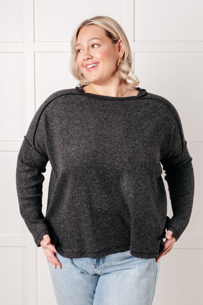 Simply Basic Ribbed Hacci Sweater in H Mocha