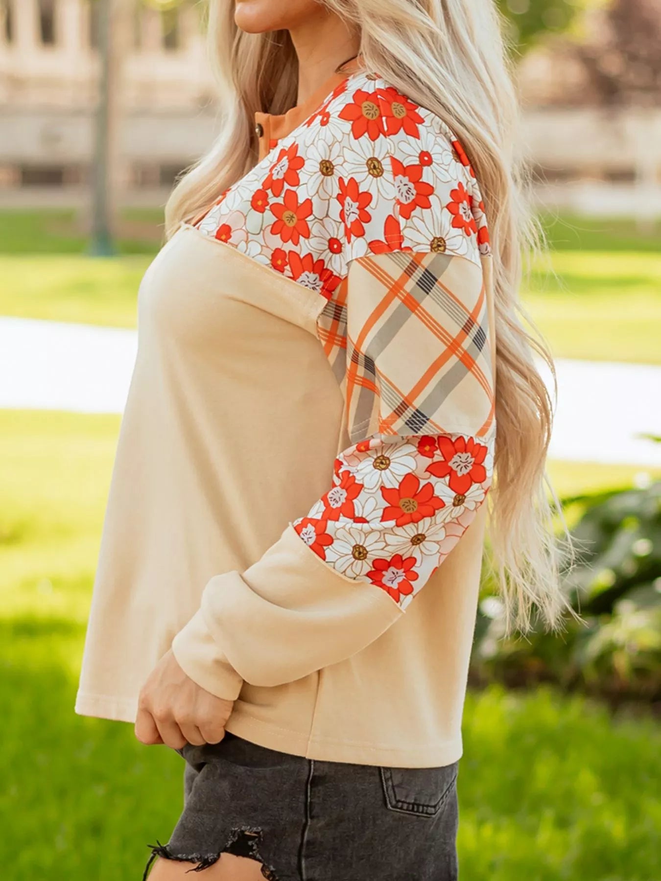 Floral Plaid Patchwork Casual Top