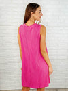 Show off your power and style in this ribbed knit dress! The banded, crossed V-neck adds a touch of edginess, while the sleeveless design keeps you cool and comfortable. With its flattering A-line fit, this dress is sure to become your go-to for any occasion. Don't miss out on the power you hold in this tropical violet dress.
