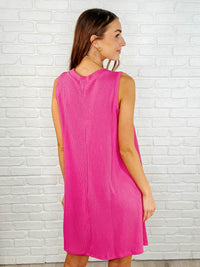 The Power I Hold V-Neck Ribbed Knit Dress in Fuchsia